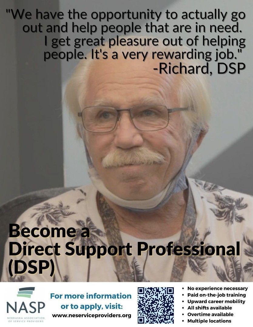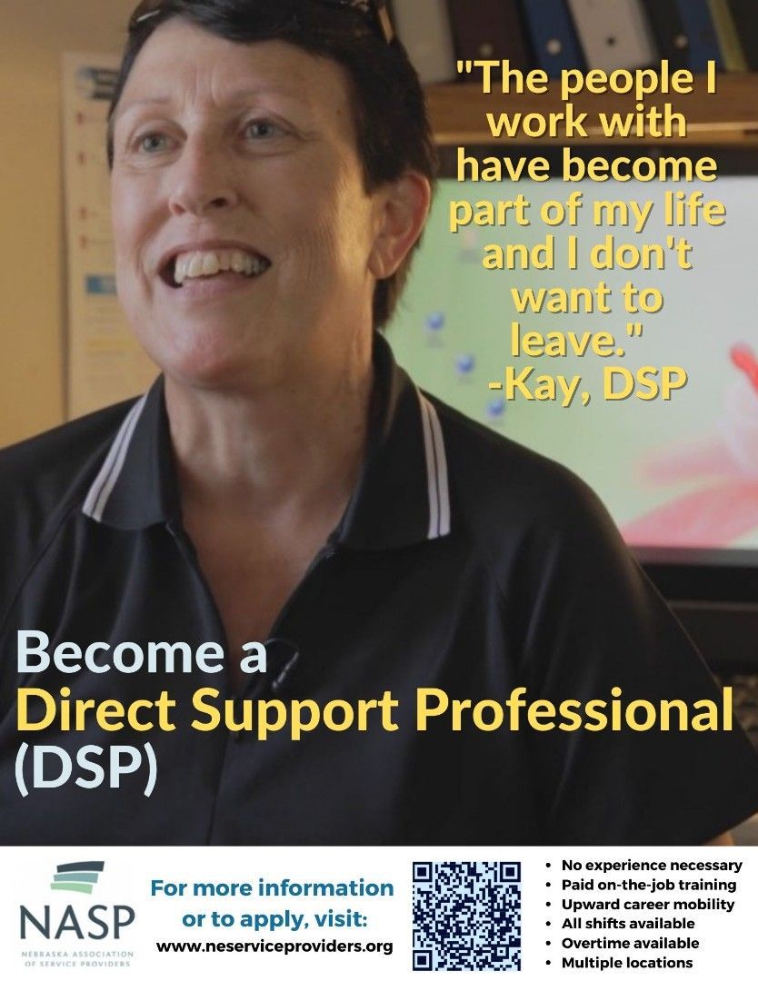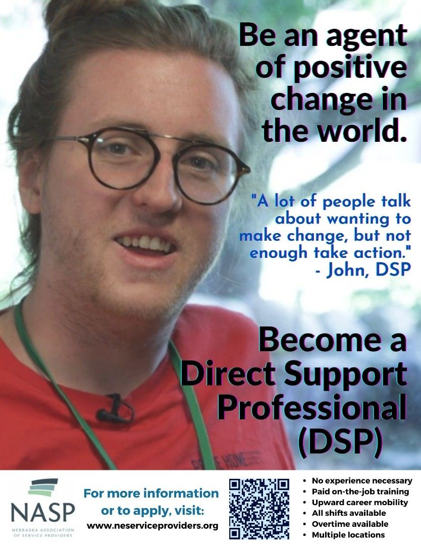 A Direct Support Professional (DSP) is someone who assists “people who need support to lead self-directed lives and participate fully in their communities” (NADSP).